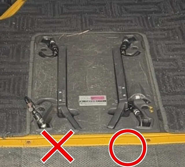 車いす固定装置のフックの根元のワイヤーがほつれてしまった。